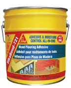 Sika T21 may be used to bond solid or engineered wood floors to either a Concrete slab or plywood sub-floor. Sika T21 covers approximately 40 square feet per gallon.